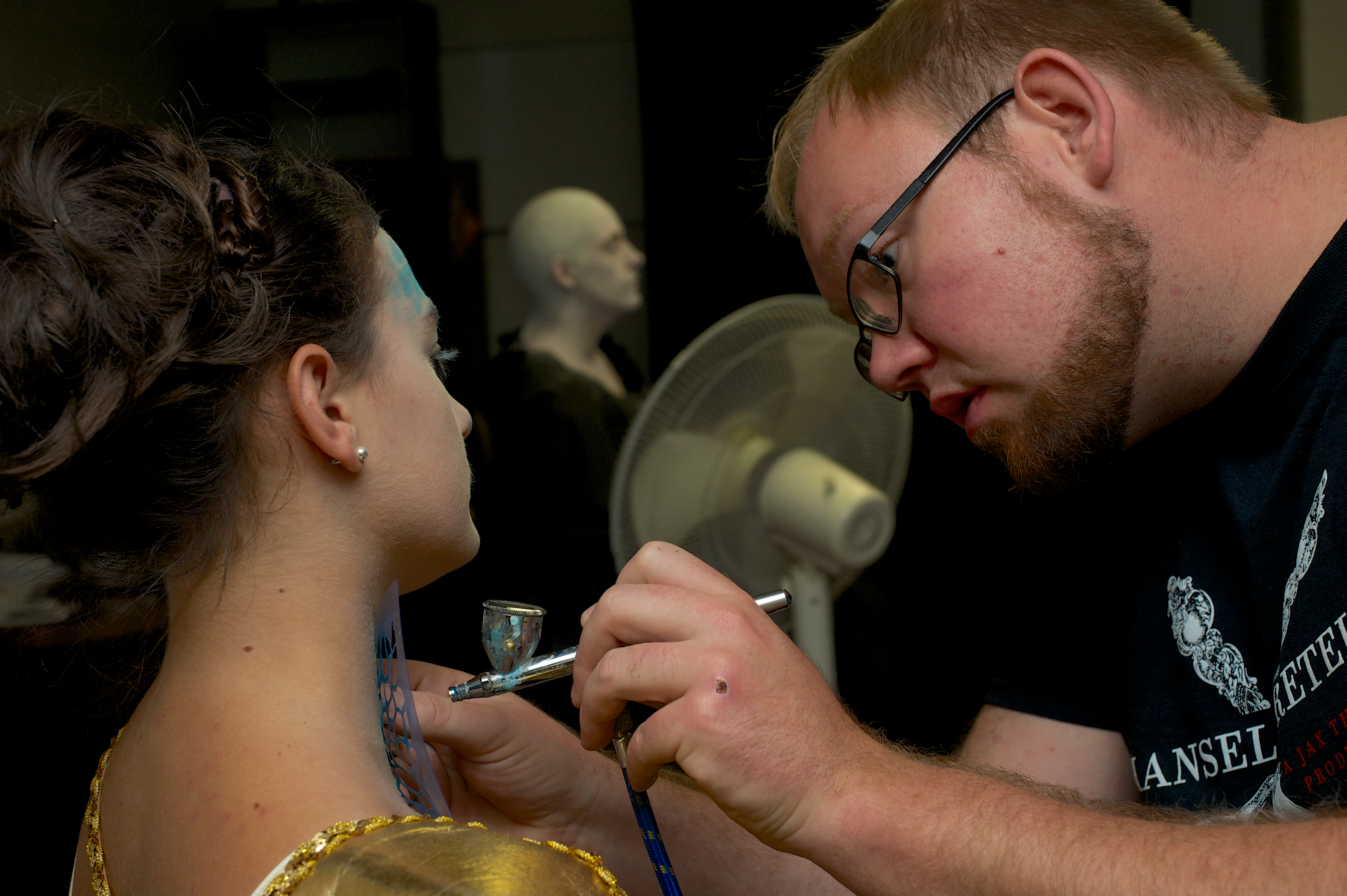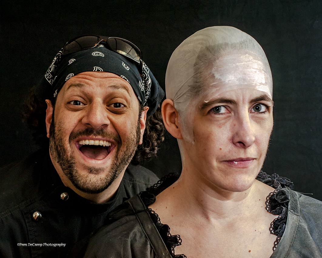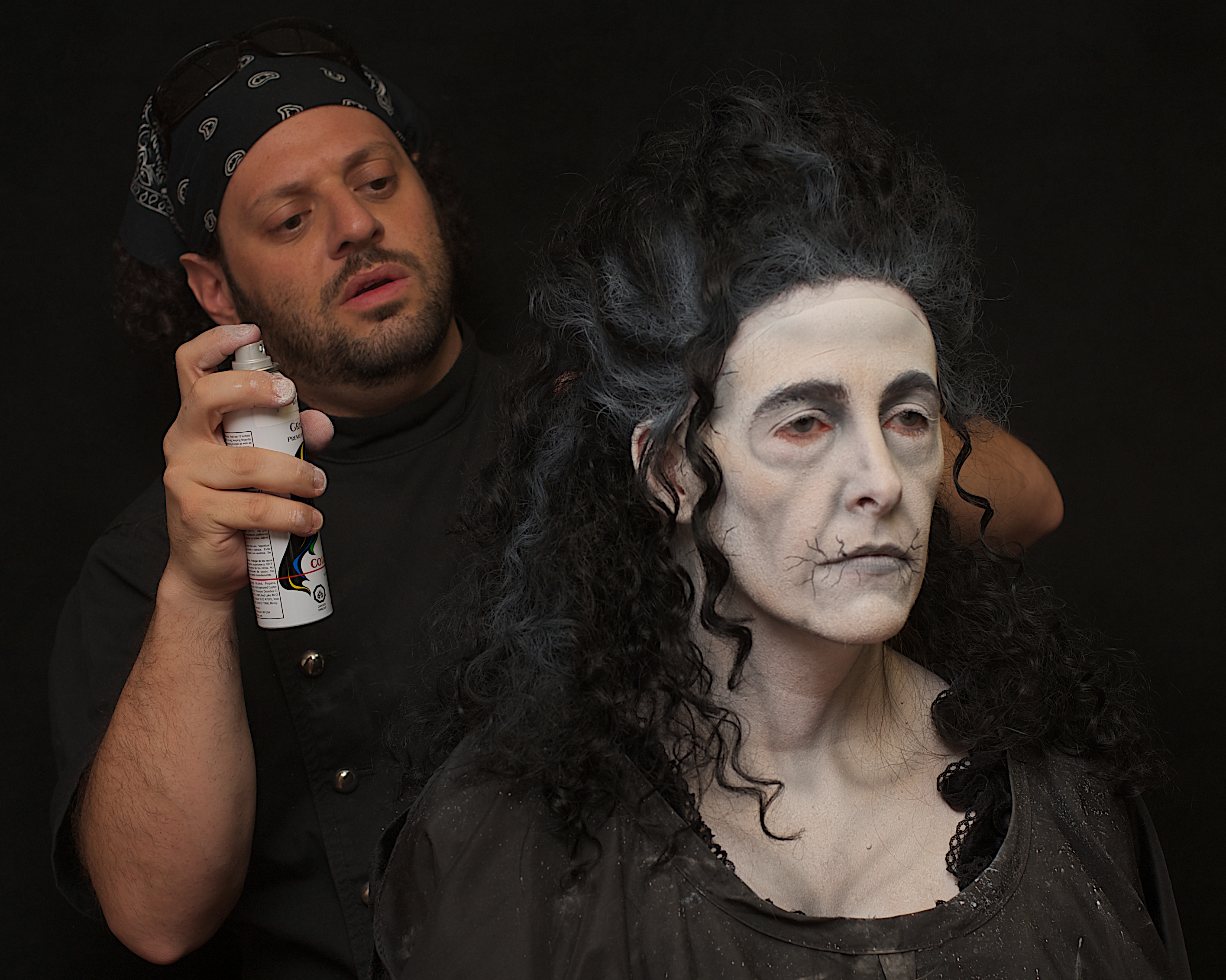 RJ & Eva during the bald cap application.
