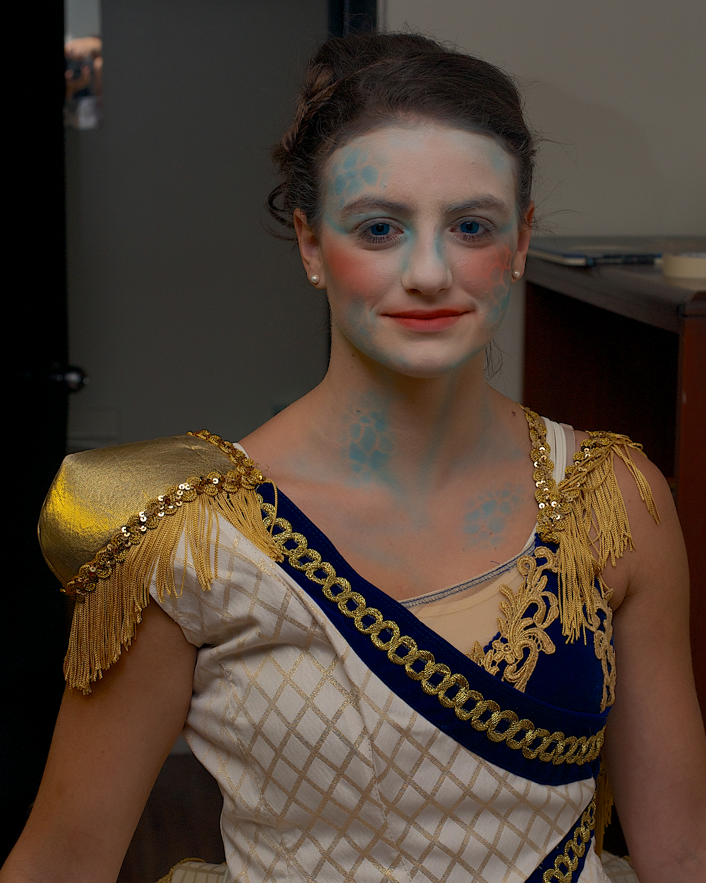 RJ applied a layer of white on Eva’s face.  He used his signature Shadow airbrush to apply the contours and fine details to give her face dimension and depth.