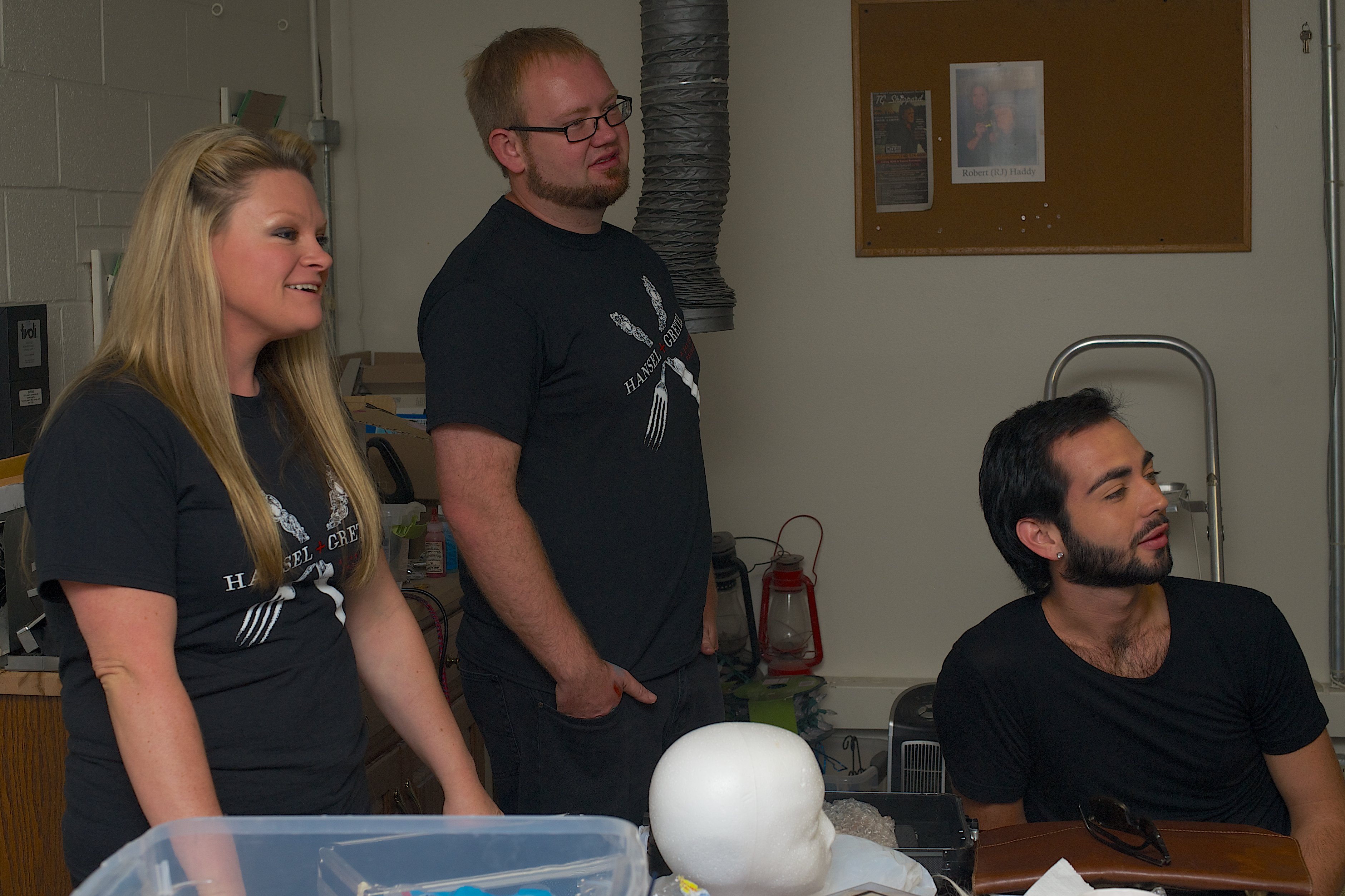 When RJ is working he attracts on-lookers.  These are not they typical on-lookers though.  Stacey Morrison and her fiancé Jerod Walker both enjoy crafting sets and experimenting with special effects make-up.  They helped to design and build the set for Hansel and Gretel plus provided make-up design for the ballerina Petra.