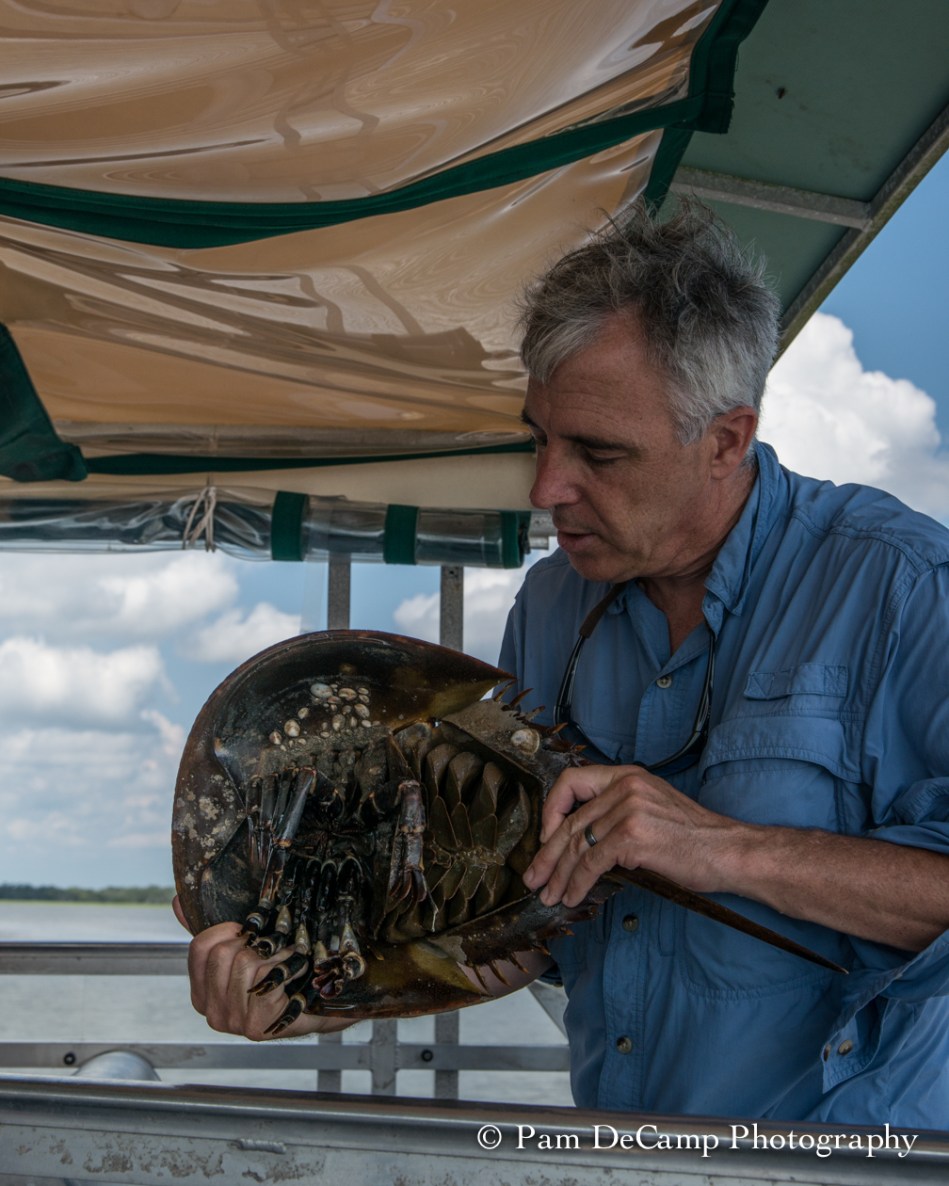 Captain Mike Neal explains the benefits of the horseshoe crab.