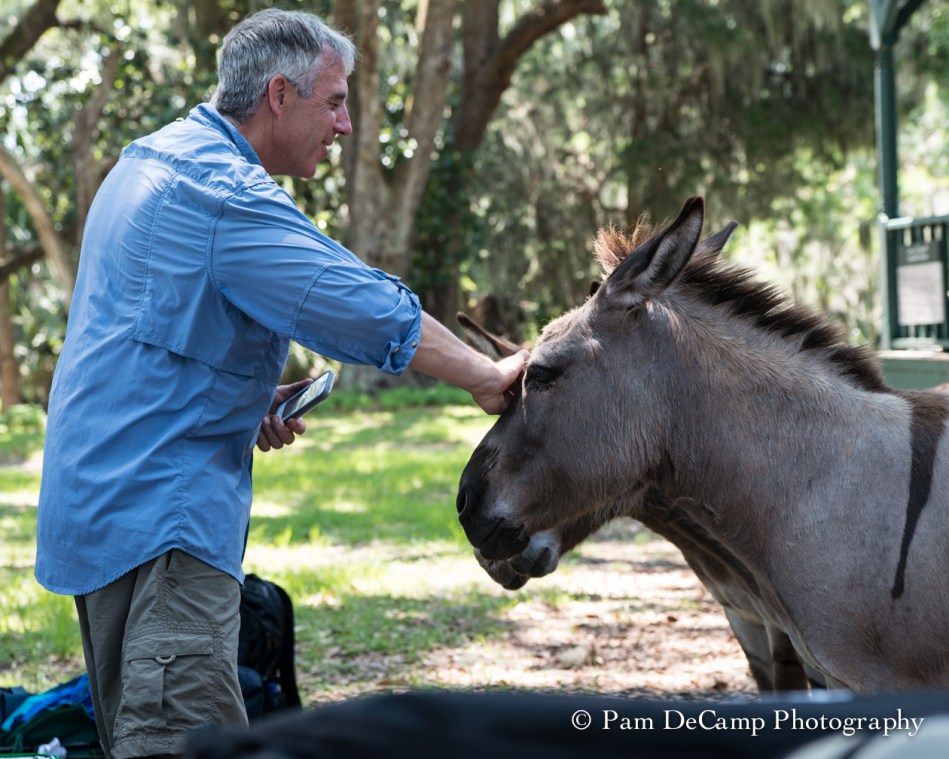 Captain Mike was trying to photograph the donkeys without success so he just paid attention to them.