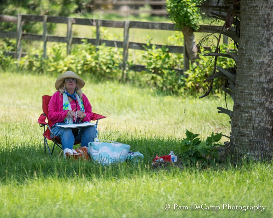 This artist was working on a scene during her stay at Ossabaw.